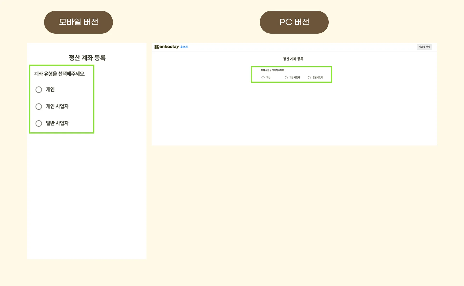 이번 PG사 변경으로 호스트분들은 정산을 더 빠르고 명확하게 확인하실 수 있게 됩니다. 정산이 원활히 이루어지려면 반드시 계좌 등록과 본인인증 절차를 먼저 완료해주셔야 합니다.
