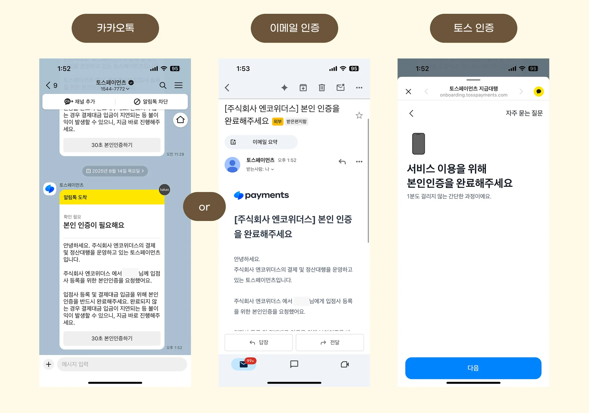 4. 카카오톡/이메일 알림 → 토스 인증 완료